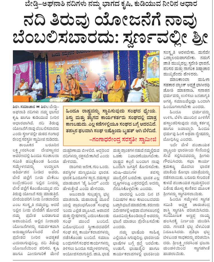 21 Feb 2026 ನದಿ ತಿರುವು ಯೋಜನೆಗೆ ನಾವು ಬೆಂಬಲಿಸಬಾರದು; ಸ್ವರ್ಣವಲ್ಲೀ ಶ್ರೀ by swarnavalliseva | posted in: Press Note/News | 0 Share this… Facebook Whatsapp Twitter Gmail Telegram