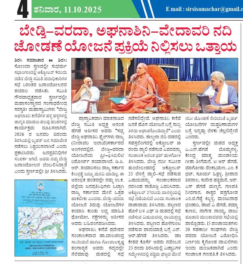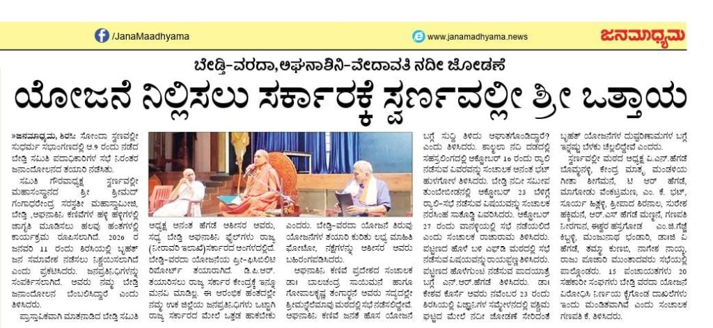 ಯೋಜನೆ ನಿಲ್ಲಿಸಲು ಸರ್ಕಾರಕ್ಕೆ ಸ್ವರ್ಣವಲ್ಲೀ ಶ್ರೀ ಒತ್ತಾಯ