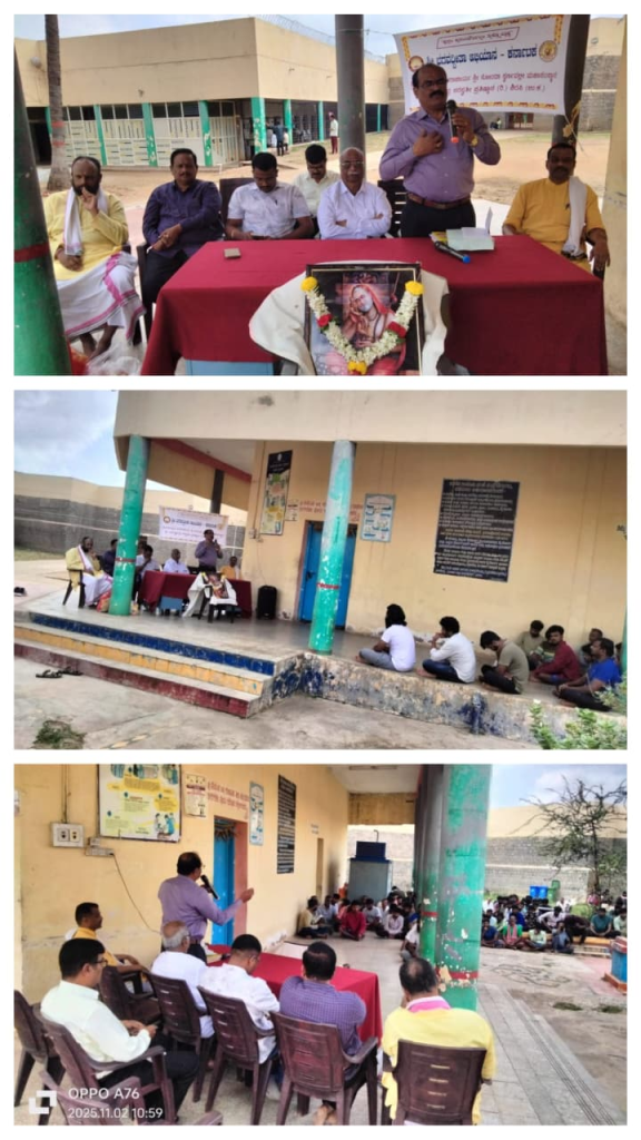 ಚಿತ್ರದುರ್ಗದ ಜಿಲ್ಲಾ ಬಂದೀಖಾನೆ ಆವರಣದಲ್ಲಿ 1-11-2025ರಂದು ಉಪನ್ಯಾಸ, ಸಮಾರೋಪ ಕಾರ್ಯಕ್ರಮ ಯಶಸ್ವಿಯಾಗಿ ನಡೆದಿದೆ. ಅಧೀಕ್ಷಕರು ಶ್ರೀ ಸಿದ್ಧರಾಮ ಪಾಟೀಲ್, ಜೈಲರ್ ಶ್ರೀ ರಾಜೇಂದ್ರ, ಉಪ ಜೈಲರ್ ಶ್ರೀ ಮಡಿವಾಳಪ್ಪ, ಶಿಕ್ಷಕರಾದ ಶ್ರೀ ಶ್ರೀರಾಮರೆಡ್ಡಿ ಹಾಗೂ ಸಿಬ್ಬಂದಿಗಳು ಉಪಸ್ಥಿತರಿದ್ದರು.