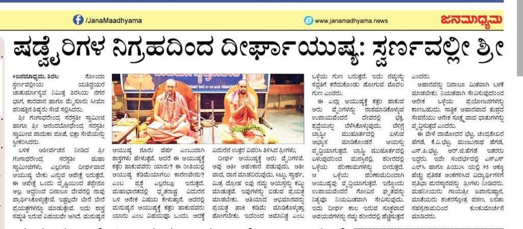 ಷಡ್ವೈರಿಗಳ ನಿಗ್ರಹದಿಂದ ದೀರ್ಘಾಯುಷ್ಯ; ಸ್ವರ್ಣವಲ್ಲೀ ಶ್ರೀ
