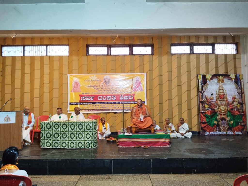25 Nov 2025 ಸರ್ವ ದಂಪತಿ ಶಿಬಿರ by swarnavalli | posted in: Events | 0 ಪರಮ ಪೂಜ್ಯ ಶ್ರೀ ಶ್ರೀಮದ್ ಗಂಗಾಧರೇಂದ್ರ ಸರಸ್ವತೀ ಮಹಾಸ್ವಾಮಿಗಳವರ ದಿವ್ಯ ಸಾನ್ನಿಧ್ಯದಲ್ಲಿ ಶಿರಸಿಯ ಮಾರಿಕಾಂಬಾ ದೇವಸ್ಥಾನದ ಆವರಣದಲ್ಲಿ ಸರ್ವ ದಂಪತಿ ಶಿಬಿರ ನಡೆಯಿತು. ಸುಮಾರು 55 ದಂಪತಿಗಳು ಶಿಬಿರದ ಪ್ರಯೋಜನವನ್ನು ಪಡೆದುಕೊಂಡರು. Previous Next Share this… Facebook Whatsapp Twitter Gmail Telegram