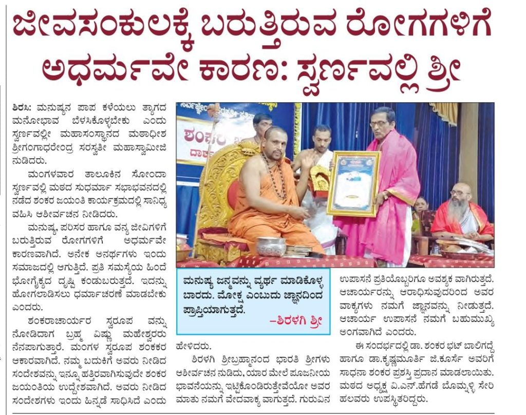 ಸ್ವರ್ಣವಲ್ಲೀ ಮಠದಲ್ಲಿ ನಡೆದ ಶಂಕರ ಜಯಂತಿ
